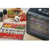 Akár 400 W elérhető teljesítmény • 3 cm szárító szint hasznos magasság • LED kijelző háttérvilágítással • Elektronikus hőmérséklet szabályozás 35-70°C • 8 darab szárító szita • Elektronikus időkapcsoló a későbbi kikapcsoláshoz • Helytakarékos üzemeltetés, kevesebb szita használatával (egy szitával is működtethető)