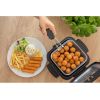 Légkeveréses főzőedény halogén fűtőszállal 12 L • Kapacitás: 12 L • Hőfokszabályozó: 65 - 250 C • 60 perces időzítő • Funkciók: pirítás, rostélyos készítés, barbecue sütés • Légkeveréses sütés, olajsütés, grillezés, párolás • 1200 - 1400 W • Bővítőgyűrű nélkül