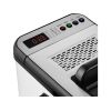 3,2 literes maximális sütőkosár kapacitás – 1,4 kg hasábburgonya • 110°C és 190°C között beállítható termosztát • 5 előre beállított program + egyedileg állítható • Tapadásmentes felület a belső edényen • Rozsdamentes ház • Időkapcsoló • Levehető rozsdamentes fedél, betekintő nyílással • Beépített fogantyú a fedél kényelmes nyitásához • A sütőkosár fogantyúja a tisztításhoz és tároláshoz levehető • Hosszú élettartamú krómacél sütőkosár • Hideg tapintású fogantyú a kényelmes használathoz • Kijelző lámpa • Mechanikus működtetés • Kivehető fűtőtest a tökéletes tisztításhoz • Kivehető belső olajedény, mosogatógépben is mosható • Fogantyú a kényelmes mozgatáshoz • Alumínium zsírszűrő • Ötletes tartó az olaj lecsepegtetéséhez és a hálózati vezeték tárolására • Csúszásmentes lábak garantálják a készülék biztonságos használatát • Számos biztonsági funkcióval ellátva • Teljesítmény: 2 200 W • Hálózati vezeték hossza: 100 cm• Garancia: 24 hónap