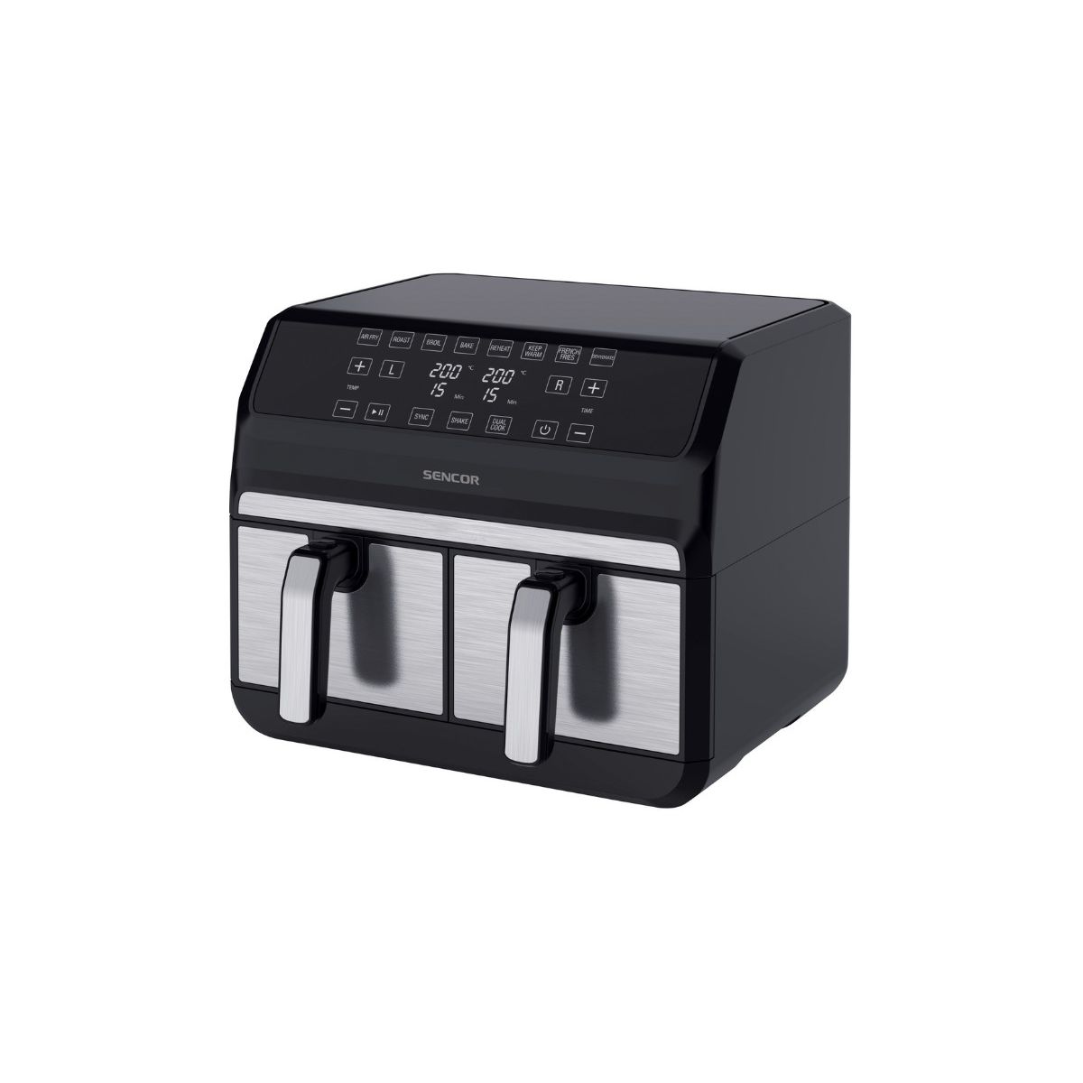 2× 4,0 l – teljes térfogat 8,0 literes • 1700 W elérhető teljesítmény • Beépített LED kijelző • Érintésvezérelt működtető panel • Gyors felfűtés 3 perc alatt • Olaj szagszűrő • 60 perces időkapcsoló hangjelzéssel • Beállítható hőmérséklet 60 és 200 °C között • 8 előre beállított program • Sütés olaj nélkül • Kevesebb kellemetlen szag keletkezik • Nagysebességű levegő keringtetés • Kivehető sütőkosár rács, a tapadásmentes felületnek köszönhetően könnyen tisztítható • Egyidejűleg két különböző hőmérséklet is beállítható • Hideg érintésű külső felület • Automatikus kikapcsolás• Garancia: 24 hónap