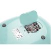 Modern szenzorgombos kezelés • Könnyen tisztítható üvegfelület • Teherbírás: 5 kg • Beosztás: 1 g • Átállítás g, ml, oz, fl.oz, lb:oz között • Tára hozzámérési funkció • Kikapcsoló automatika, túlterhelés kijelzése • Méret: 20 x 14,5 x 1,7 cm • Kijelző mérete: 4,6 x 2,4 cm • Számjegyek mérete: 20 mm • 1 x 3 V CR2032 elemmel