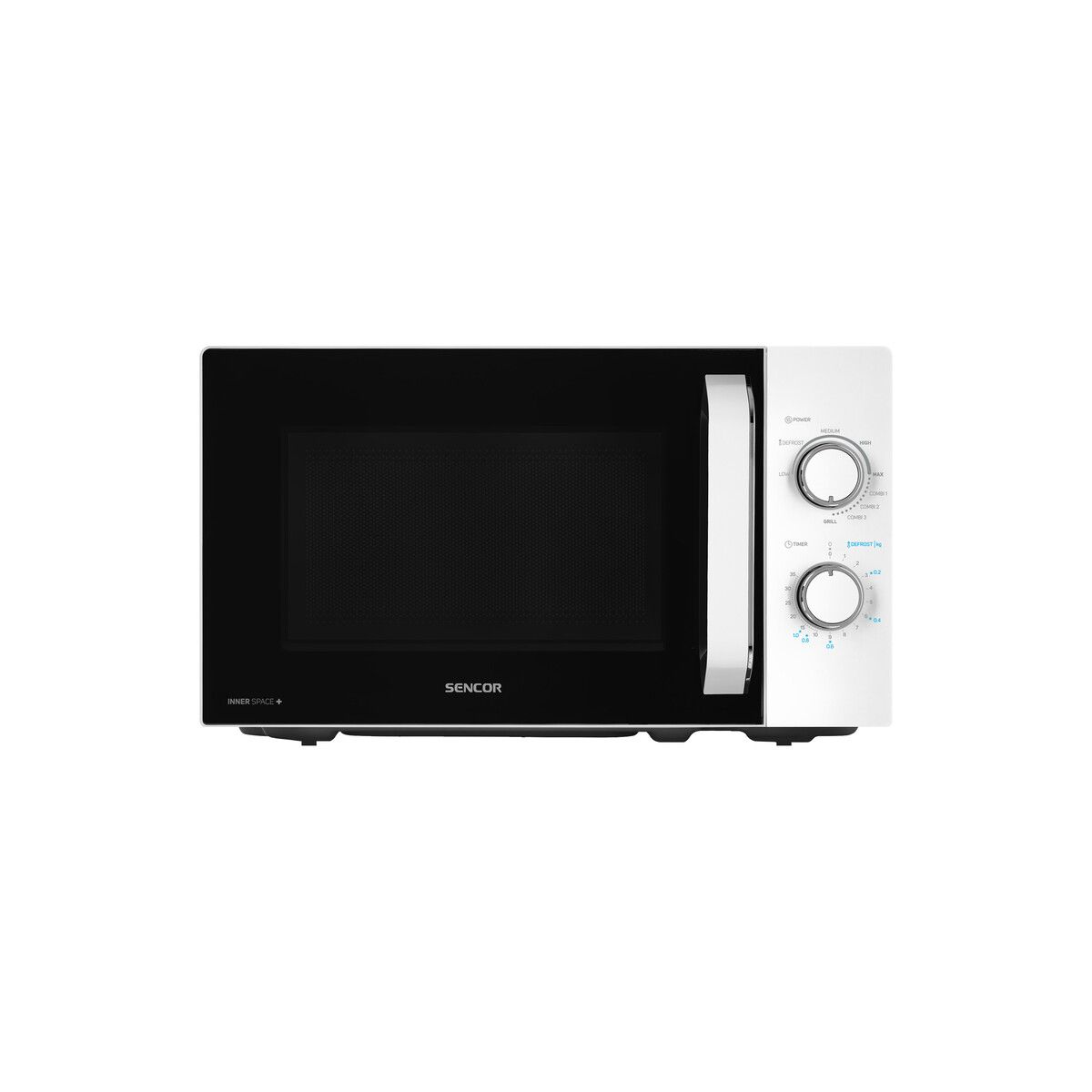Sencor SMW 4220WH mikrohullámú sütő • Termékszín: Fehér • 700 W mikrohullámú teljesítmény • 1000 W grill teljesítmény • 20 literes kapacitás • 35 perces időzítő • 255 mm átmérőjű forgótányér • Könnyű tisztítás rozsdamentes acél kivitelben • Alacsony zajszint (60 dB) • Gyermekzár funkció• Garancia: 24 hónap