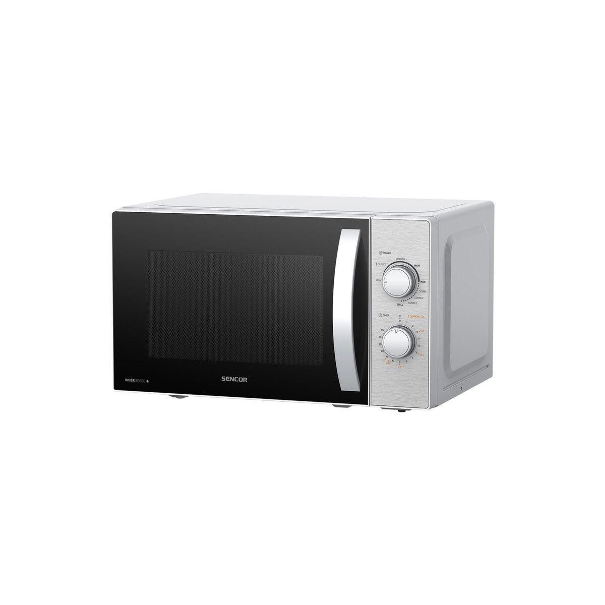 Sencor grilles mikrohullámú sütő • 5 teljesítményfokozat • Gyorsindítási funkció • Kiolvasztás súly és idő alapján • Űrtartalom: 20 L • Digitális óra / Késleltetett indítás - maximum 95 percig • Beépített ajtónyító fogantyú, bal oldalra nyíló kivitel • A forgótányér átmérője 255 mm