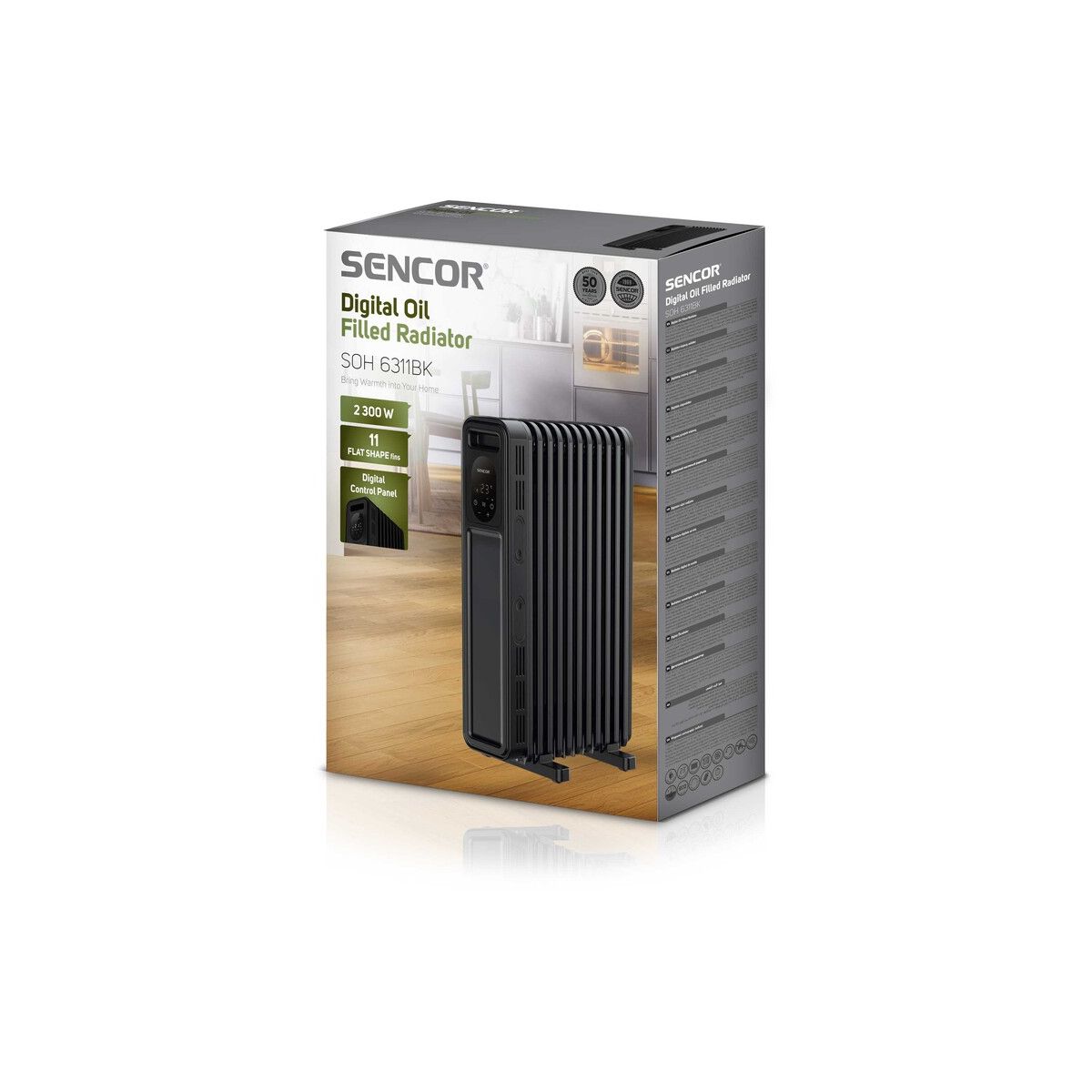 Sencor SOH 6311BK elektromos olajradiátor • teljesítmény 2300 watt • hőmérséklet beállítás 5 és 35 °C között • digitális vezérlés • halk és energiatakarékos működés • biztonsági funkciók kettős túlmelegedés elleni védelemmel• Garancia: 24 hónap