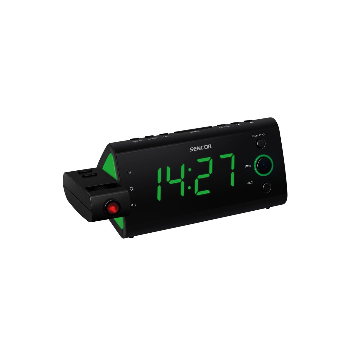Sencor rádiós ébresztőóra kivetítővel • PLL FM rádió 10 programhellyel • FM rádióvevő 87,5 - 108 MHz • LED-es kijelző borostyán színű 2,3 cm (0,9") • A kijelző fényerejének beállítása • Az idő kivetítés színe piros • Forgatható objektív 180°-ban állítható szöggel • Kettős riasztási rendszer • Rádióval vagy hangjelzéssel ébresztés • Alvásüzemmód (Sleep funkció) • Ismételt ébresztés