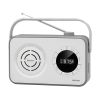 Hordozható PLL FM rádiókészülék • Bluetooth v 4.0 adatkapcsolat • USB, Micro SD és AUX csatlakozás • Kimeneti teljesítmény: 1,2 W RMS • Hangszóró mérete: 3" • Magas érzékenység és kitűnő hangteljesítmény • USB csatlakozó • Micro SD Slot • AUX-IN bemenet külső készülék csatlakoztatásához, Jack 3,5 mm • AUX-OUT kimenet fülhallgató csatlakoztatásához, Jack 3,5 mm • Az FM vétel frekvenciája: 87,5 - 108 MHz • Digitális hangolás és a vételi frekvencia megjelenítése • 50 programhely az FM rádióhoz • Óra • Elalvás időzítő funkció • Ébresztés rádióval / hangjelzéssel / USB / Micro SD • Forgatható kezelőgombban állítható hangerő • Kihúzható antenna FM rádió vételéhez • Gumírozott felület • Hordozó fogantyú • Negatív LCD-kijelző háttérvilágítással • Tápellátás: AC 230 V / 50 Hz vagy 3 x 1,5 V C / LR14 típusú elem (nem a csomag része) • Fogyasztás: 5 W• Garancia: 24 hónap