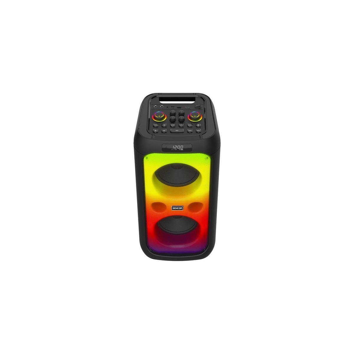 Sencor SSS PARTYCON WAVE party hangszóró • 100 W teljesítmény • 60 Hz–12 kHz frekvenciatartomány • 2,4 GHz-es Bluetooth mikrofon 10 méteres hatótávolsággal • 8000 mA Li-ion akkumulátor 7 óra lejátszási idővel • Bluetooth 5.4 és többféle csatlakozási lehetőség• Garancia: 24 hónap