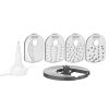 4 kimenet az egyszerűbb használat érdekében • Fokozatmentes indulás, változtatható fordulatszám • 8 sebességfokozat és impulzus funkció • Sencor Smart Power & Energy – biztosítja az optimális fordulatszámot • Átlátszó fedél a hozzávalók mixelés közbeni hozzáadására szolgáló nyílással • 4,5 literes rozsdamentes acéledény, mérőskálával • 2 beépített Nutri Smart program (Keverés; Smoothie mód) • Bolygóműves keverési rendszer • Bajonett-rendszerű tartozékrögzítés • Felhajtható kar a kényelmesebb munkavégzéshez, tartozékok cseréjéhez • Egyszerűen tisztítható (a rozsdamentes edény mosogatógépben is elmosható) • Hálózati vezeték tároló • Recept ötletek, tippek és tanácsok • Csúszásmentes lábak garantálják a készülék biztonságos használatát • Több biztonsági funkcióval ellátva • 3 dagasztó, keverő és könnyű tészta feltét • Dagasztó horog, A-betű formájú habverő, gömb alakú habverő • 2 különböző átmérőjű kolbásztöltő feltét • 2 db tritán üveg 2 db hűtőbetéttel (ICE STICK) • 1,25 l űrtartalmú, titánpengés asztali mixer • Multifunkciós food processor, 1,25 l-es edénnyel, 4 tárcsával és darálóval • Húsdaráló durva és finom daráláshoz 2 különböző átmérőjű kolbásztöltő feltéttel • 4,5 literes rozsdamentes acél dagasztótál mérőskálával • Teljesítmény: 1000 W • Sebességfokozatok száma: 8 • Zajszint: 85 dB • Hálózati vezeték hossza: 120 cm• Garancia: 24 hónap