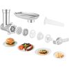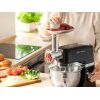 Nagy teljesítményű húsdaráló • 2200 W-os motorteljesítmény • Hosszan tartó, megbízható működés • Csendes üzemmód • Kétélű vágókés • Rozsdamentes acéltárcsák • Fordított funkció • Aprítótartozékok vágóhenger-készlettel • Kolbásztöltő • Paradicsom facsaró • Tengelykapcsoló a motor károsodásának megelőzése érdekében • Fém darálóház • Fogantyú a könnyű szállítás érdekében