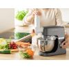 Konyhai robotgép 1300 W-os teljesítménnyel, beépített mérleggel, érintőképernyővel, rozsdamentes acélból készült, megvilágított, 5,5 l űrtartalmú tállal és töltőnyílással ellátott fedéllel, gazdag tartozékskálával, pop-up rendszerrel, csúszásgátló lábakkal, zökkenőmentes sebességváltással, szakácskönyvvel, oktatóvideóval.