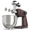 Nagy teljesítményű húsdaráló • 2200 W-os motorteljesítmény • Hosszan tartó, megbízható működés • Csendes üzemmód • Kétélű vágókés • Rozsdamentes acéltárcsák • Fordított funkció • Aprítótartozékok vágóhenger-készlettel • Kolbásztöltő • Paradicsom facsaró • Tengelykapcsoló a motor károsodásának megelőzése érdekében • Fém darálóház • Fogantyú a könnyű szállítás érdekében