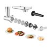 Nagy teljesítményű húsdaráló • 2200 W-os motorteljesítmény • Hosszan tartó, megbízható működés • Csendes üzemmód • Kétélű vágókés • Rozsdamentes acéltárcsák • Fordított funkció • Aprítótartozékok vágóhenger-készlettel • Kolbásztöltő • Paradicsom facsaró • Tengelykapcsoló a motor károsodásának megelőzése érdekében • Fém darálóház • Fogantyú a könnyű szállítás érdekében