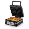 1200 W • 230 V • Állítható hőmérséklet • Tapadásmentes sütőfelület • Rozsdamentes acél borítás • Egyszerre 4 gofri süthető • Csúszásmentes talpak • Méret: 25,1 x 30 x 15 cm