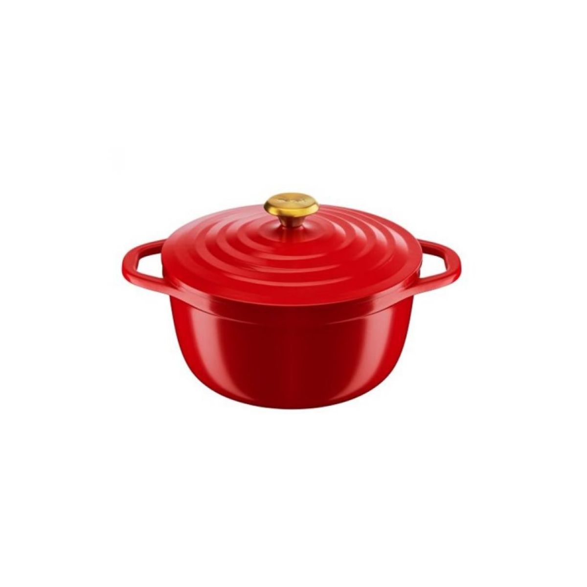 Maximális űrtartalom: 2,3 liter • Átmérő: 20 cm • Magasság: 9,3 cm • Anyag: alumínium • Szín: piros • Gáz, elektromos, üvegkerámia és indukciós főzőlapokon is használható • Ellenálló üvegből készült fedő, pára nyílással • Nemesacél fogantyúk • Rövid főzési idő a gyors hőátadásnak köszönhetően • Egyszerűen tisztítható