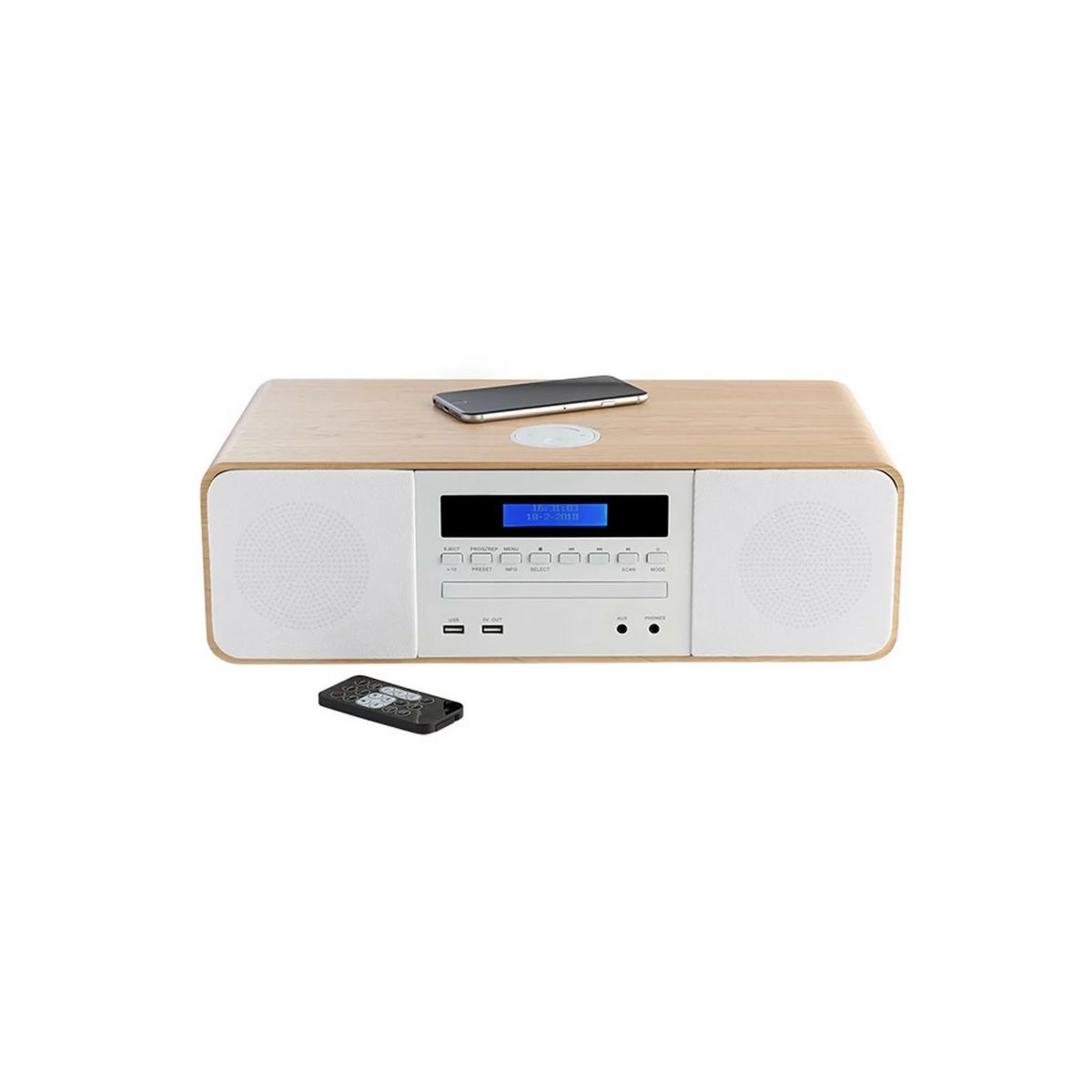 Bluetooth® • Zenei összteljesítmény 50 watt • Digitális FM-tuner automatikus letapogatással • Legfeljebb 20 FM-állomás-előjegyzés tárolása • 3,5 mm-es AUX-IN • USB lejátszó • USB töltés • Hangszínszabályzó • Távirányító 1 x LR 03 - AAA (nem tartozék) • Vezeték nélküli töltés indukciós technológiával • Tápegység AC 230V• Garancia: 36 hónap
