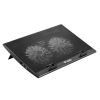 Hűtő 17,3" képátlójú Notebook készülékekhez • 5 db beépített ventilátor (4 db 140 mm, 1 db 70 mm) • Piros háttérvilágítás • USB hub funkció 2 db USB porttal • Állítható dőlésszög • Zajszennyezés: 30 DBA (minimum) • Ventilátor sebesség: 2400 RPM +/- 10%