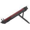 Hűtő 17,3" képátlójú Notebook készülékekhez • 5 db beépített ventilátor (4 db 140 mm, 1 db 70 mm) • Piros háttérvilágítás • USB hub funkció 2 db USB porttal • Állítható dőlésszög • Zajszennyezés: 30 DBA (minimum) • Ventilátor sebesség: 2400 RPM +/- 10%
