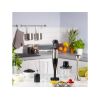 TITANIUM Quad Blade Technology • 6 év garancia a motorra • Extra csendes 1 200 W-os motor • Fokozatmentes fordulatszám szabályozás (20 osztás) • Ergonómikus tervezésű fogantyú, jobb- és balkezesek részére egyaránt • Rozsdamentes tartozékok a forró alapanyagok mixeléséhez • Beépített LED kapcsoló megvilágítás • Gomb a tartozékok biztonságos kivételéhez • Tárolást elősegítő a gyárilag kialakított akasztó